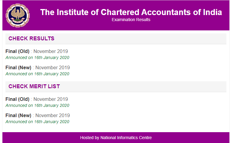 - Step 2: Click on the ICAI CA Final 2019 result link given